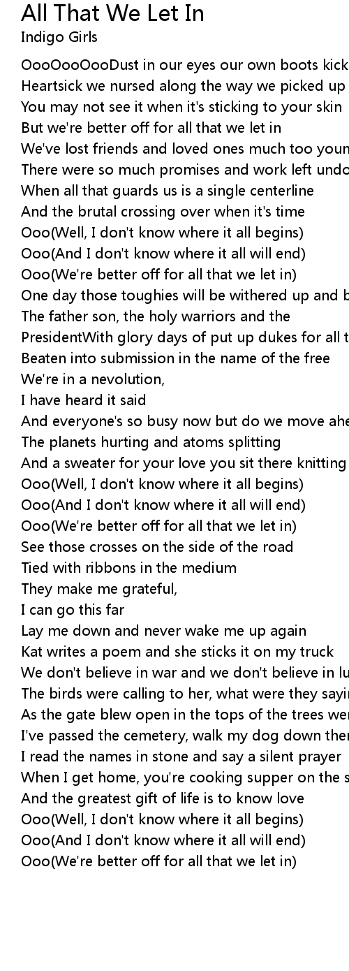Ooo(We're better off for all that we let in) |