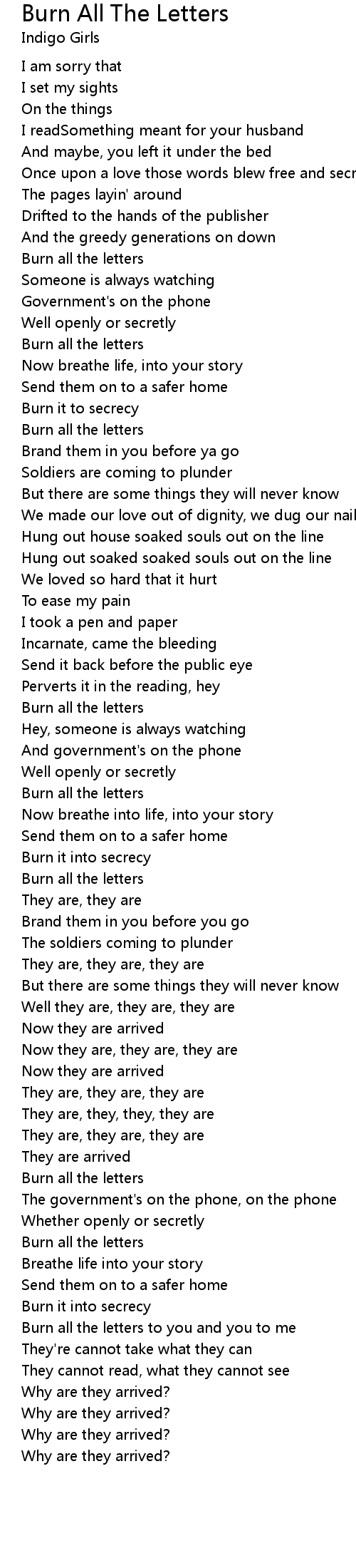 Burn all the letters to you and you to me |