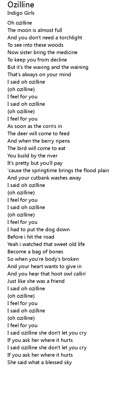 I said ozilline she don't let you cry |