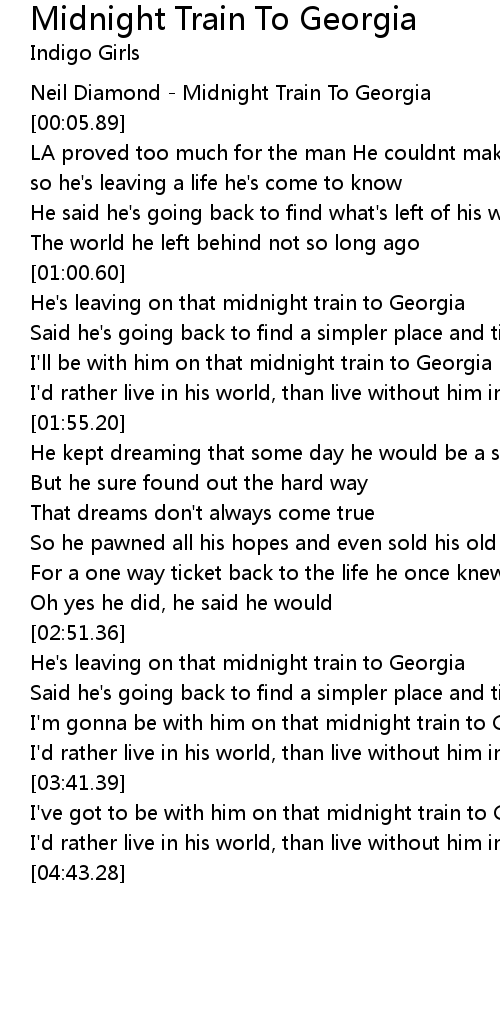 [00:01.12] Neil Diamond - Midnight Train To Georgia