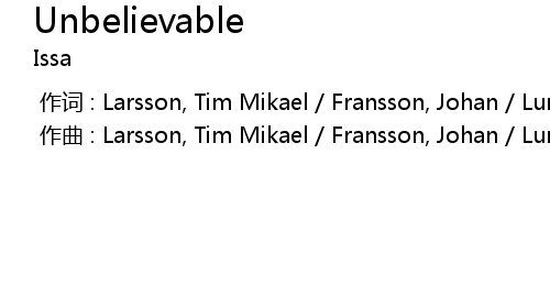 | [00:00.000] | 作曲 : Larsson, Tim Mikael / Fransson, Johan / Lundgren, Tobias |