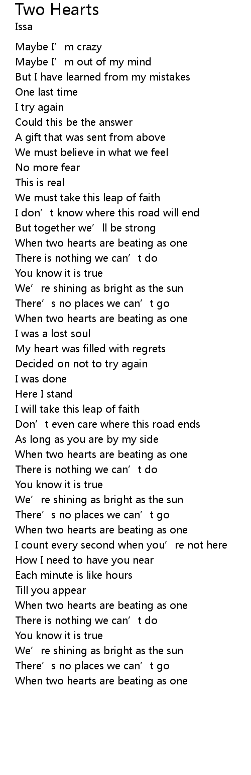 | When two hearts are beating as one | |
