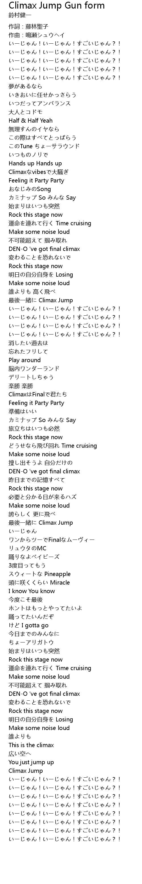 | [01:15.36] | zuì hòu yī xù Climax Jump |