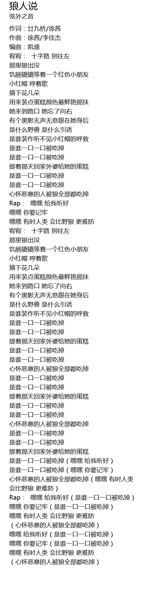 | [00:50.58] | 是谁装作听不见小红帽的呼救 |