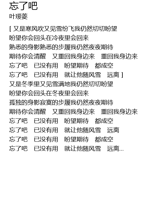 忘了吧 已没有用 就让他随风雪 远离 ]