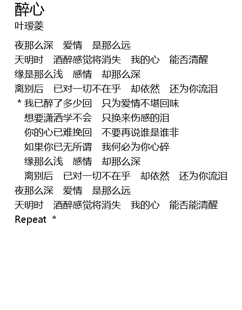 | 天明时 酒醉感觉将消失 我的心 能否能清醒 | |
