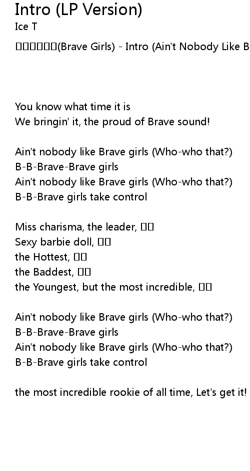 | Brave Girls Intro Ain' t Nobody Like Brave Girls | |