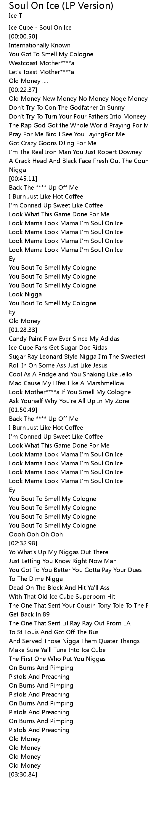 | [00:-00.20] | Ice Cube - Soul On Ice |