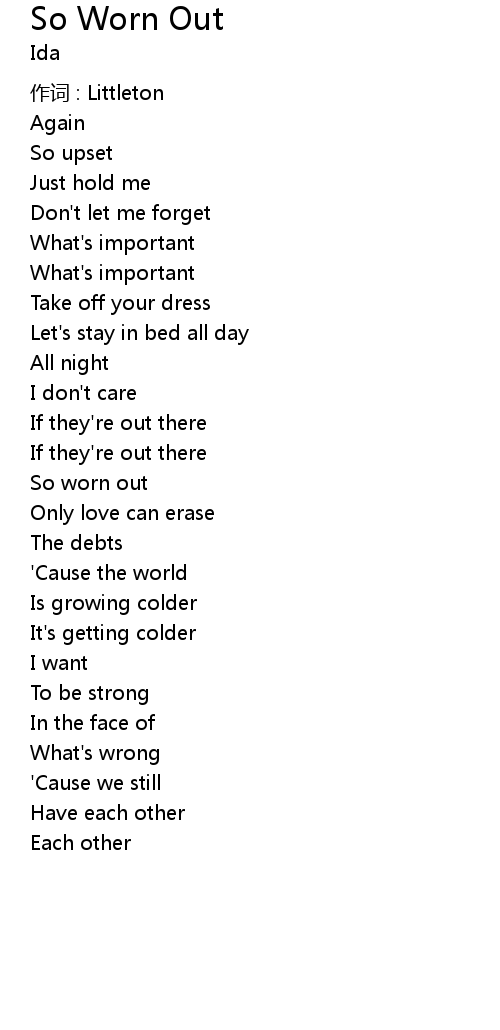 | Song | So Worn Out |
