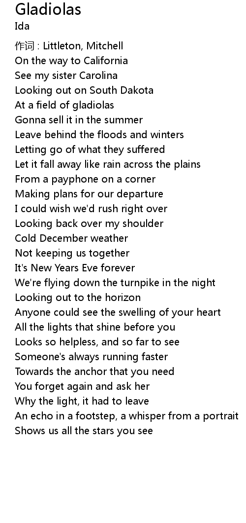 | Song | Gladiolas |