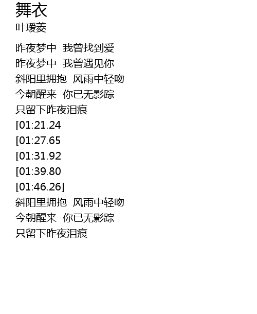 | [01:01.12] | 今朝醒来 你已无影踪 |