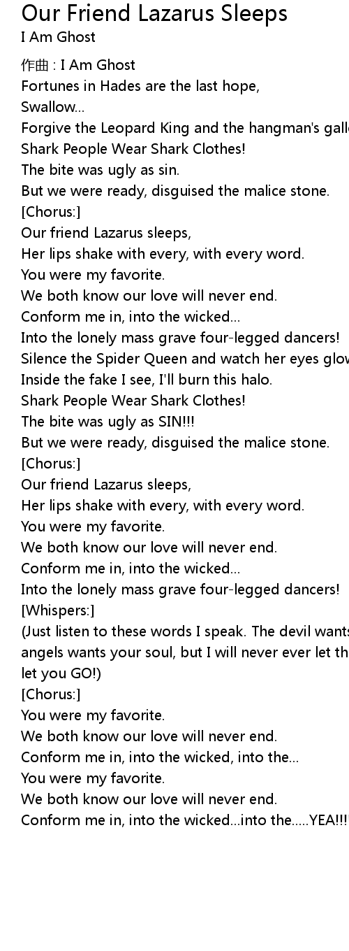 | Just listen to these words I speak. The devil wants me dead, and the dark angels wants your soul, but I will never ever let them have you. I will never let you GO! | |