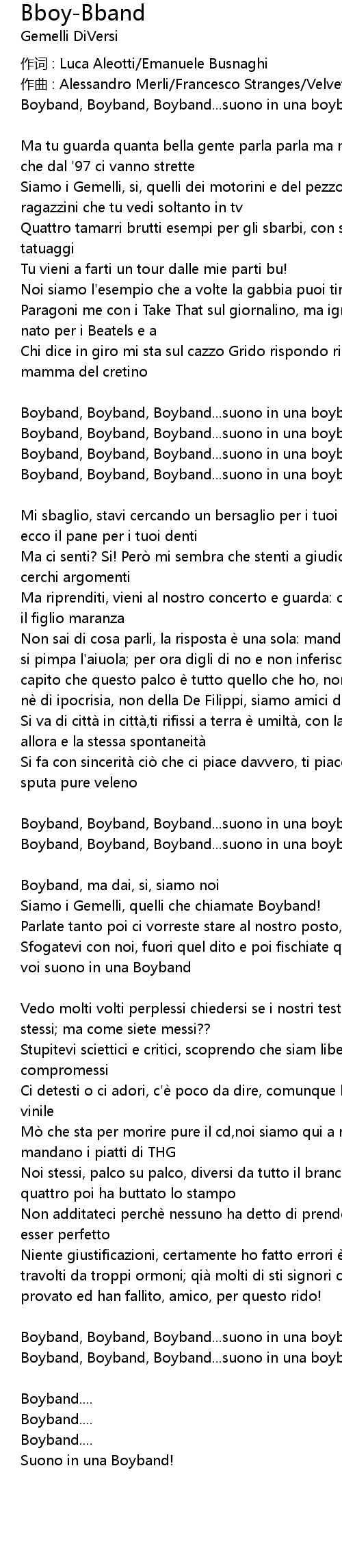 | Paragoni me con i Take That sul giornalino, ma ignori che il nome Boyband è nato per i Beatels e a | |