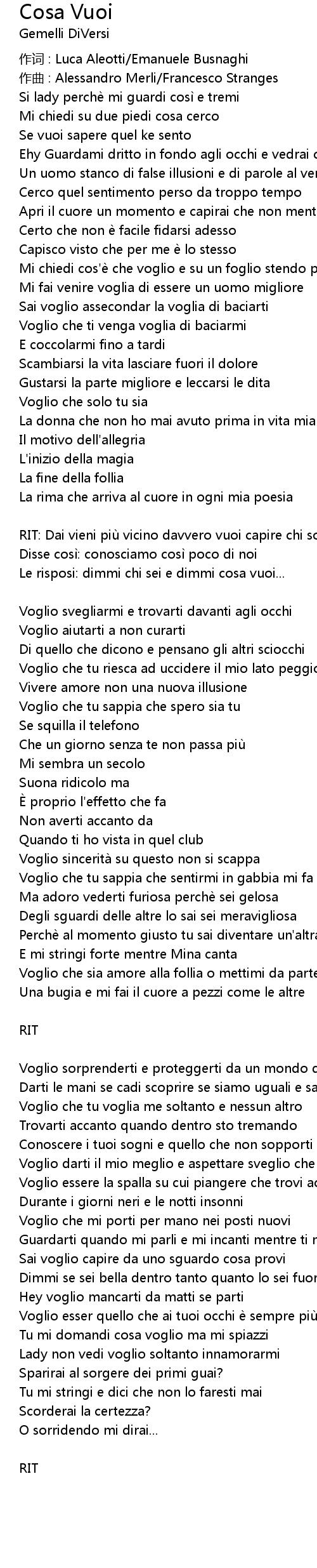 | Tu mi domandi cosa voglio ma mi spiazzi | |