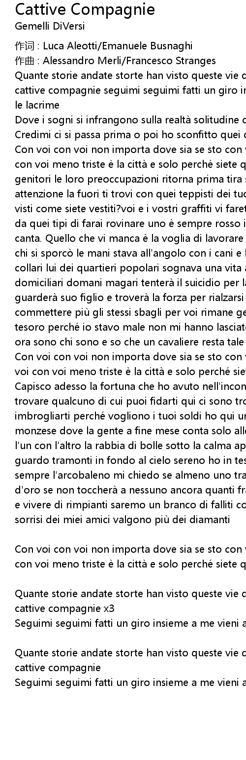 | Quante storie andate storte han visto queste vie quante volto tocco a me le mie cattive compagnie x3 | |
