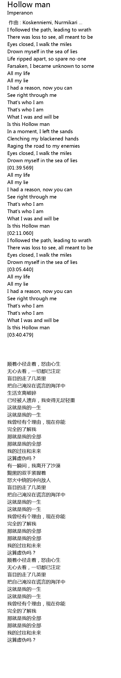 | [00:32.412] | Life ripped apart, so spare no-one |