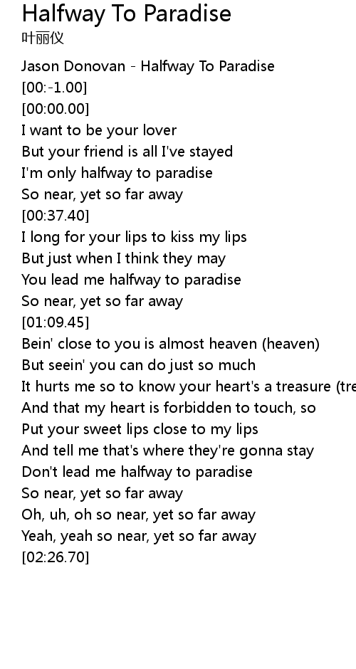 Halfway To Paradise Lyrics