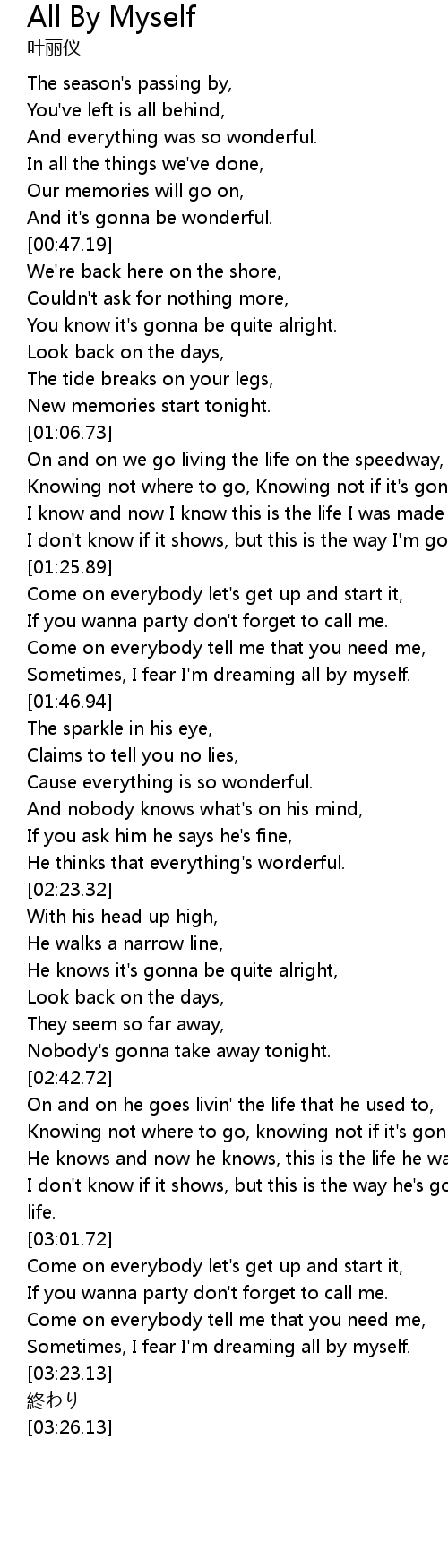 | [03:16.91] | Sometimes, I fear I'm dreaming all by myself. |