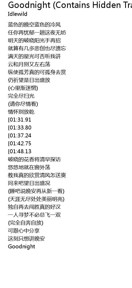 | [03:02.80][01:31.91] | (睡吧说晚安) |
