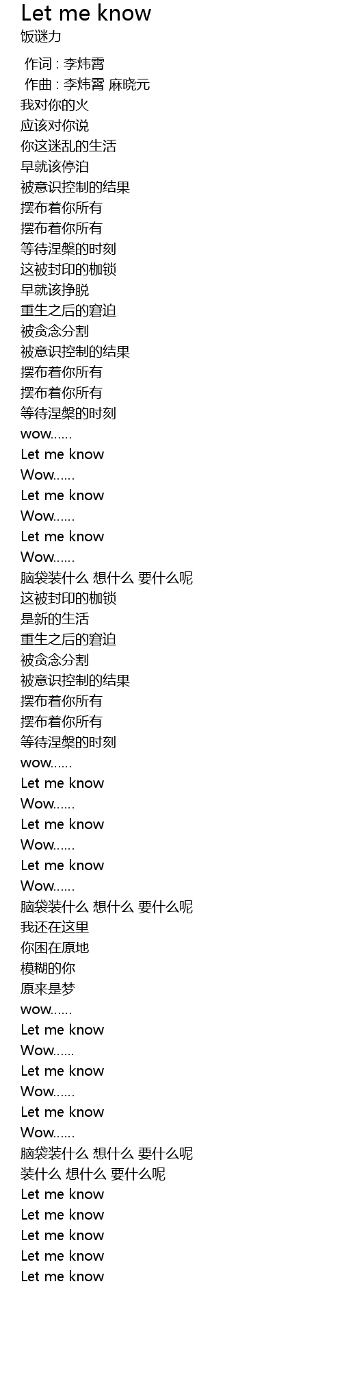 | Song | Let me know |