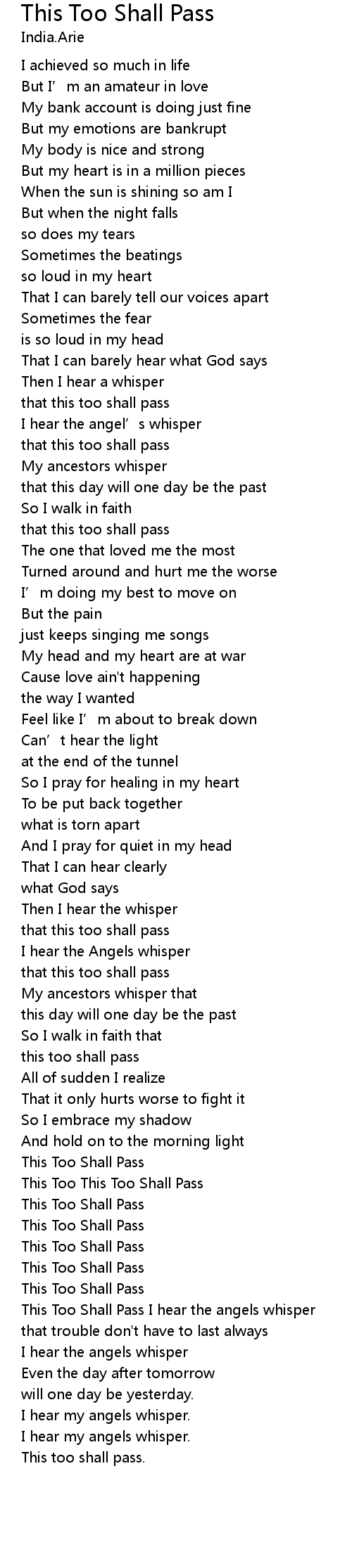 | This Too Shall Pass I hear the angels whisper | |