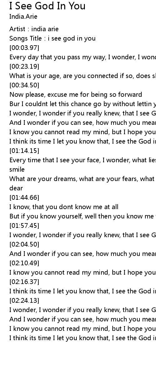 | [01:06.92] | I think its time I let you know that, I see the God in you |