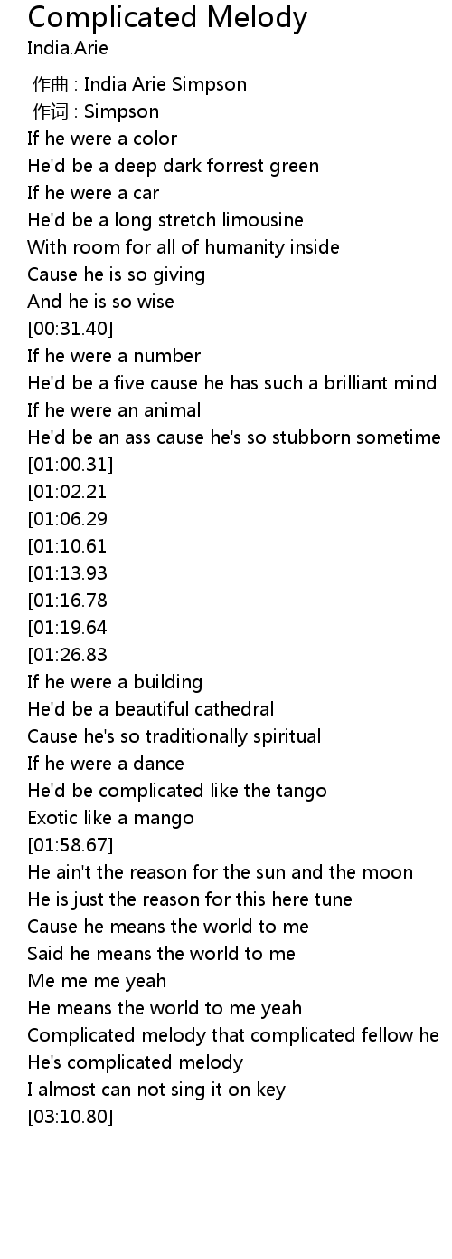 | [02:04.88][01:06.29] | He'd be a complicated melody |