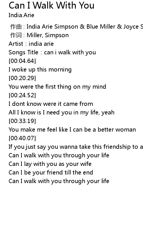 | [00:01.64] | Songs Title:can i walk with you |
