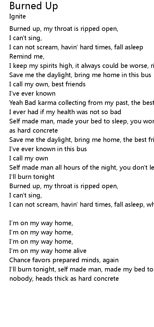 I'll burn tonight, self made man, made my bed to sleep, you don't listen to nobody, heads thick as hard concrete |