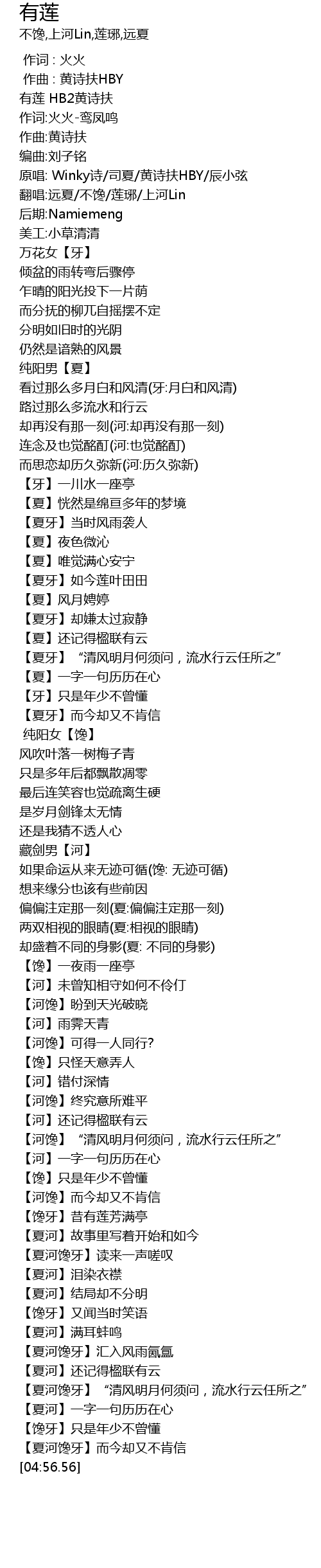 | [01:30.14] | 【夏牙】如今莲叶田田 |