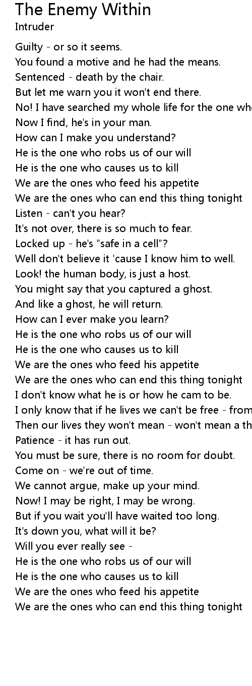 | I only know that if he lives we can't be free - from the pain and the suffering. | |