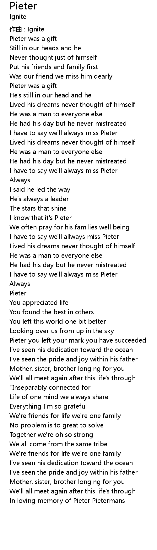 | In loving memory of Pieter Pietermans |