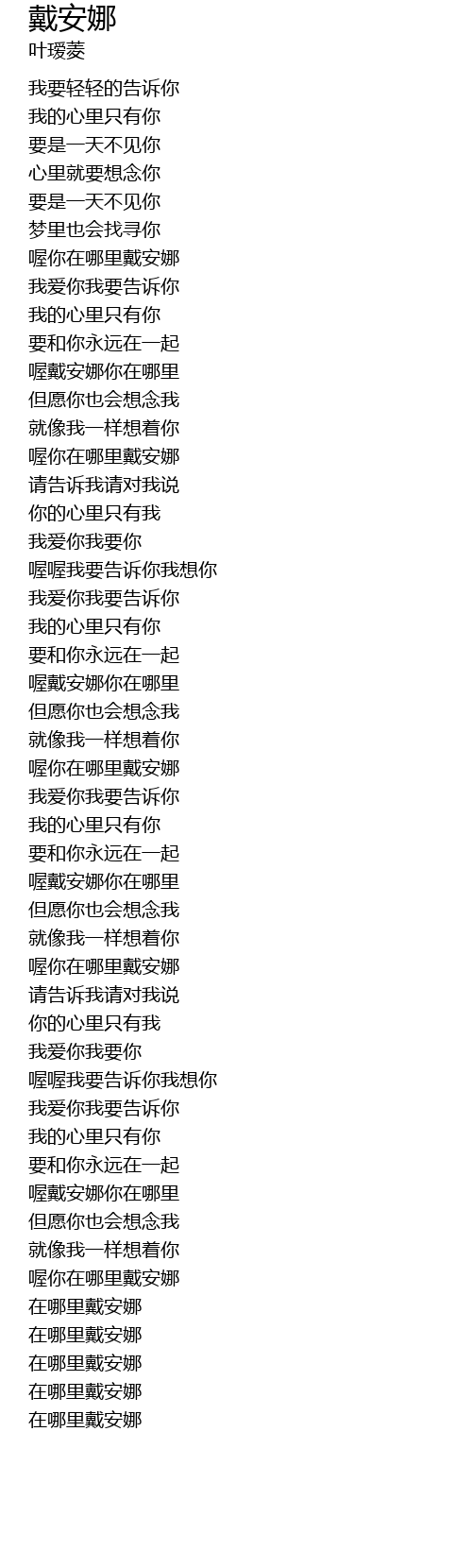| [01:43.45] | 喔戴安娜你在哪里 |