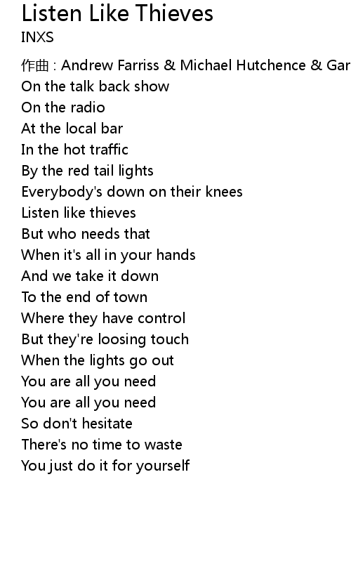 | zuò qǔ : Andrew Farriss Michael Hutchence Gary Beers | |