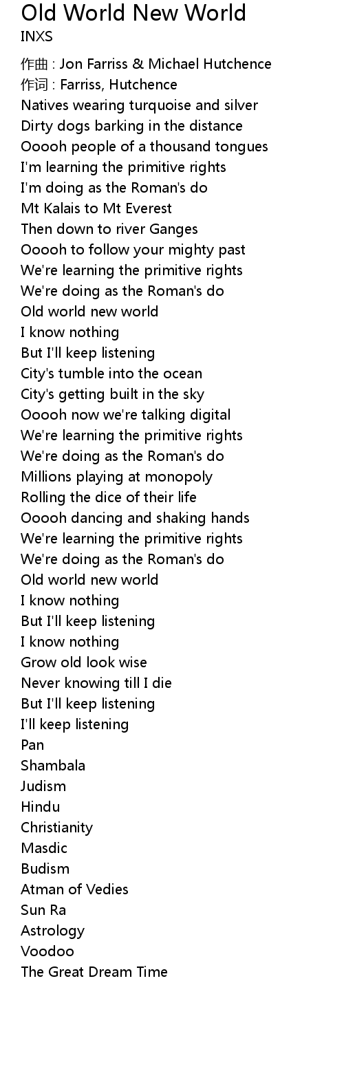 | Song | Old World New World |