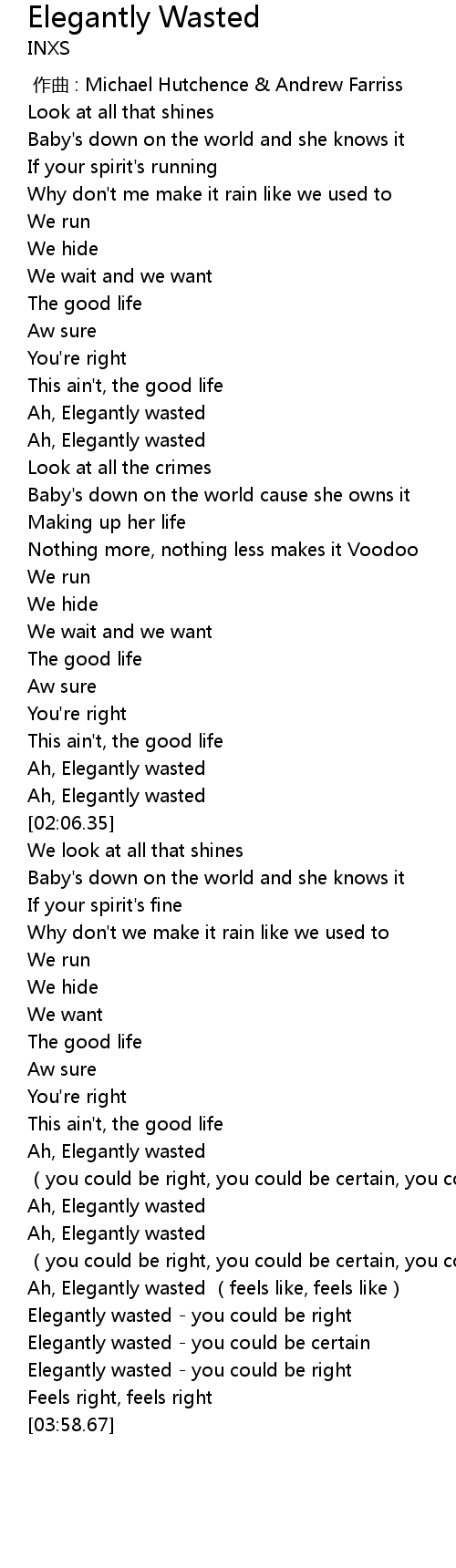 | [00:00.00] | 作曲 : Michael Hutchence & Andrew Farriss |