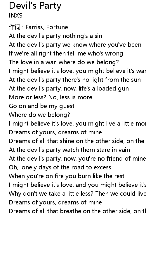 | At the devil's party we know where you've been | |