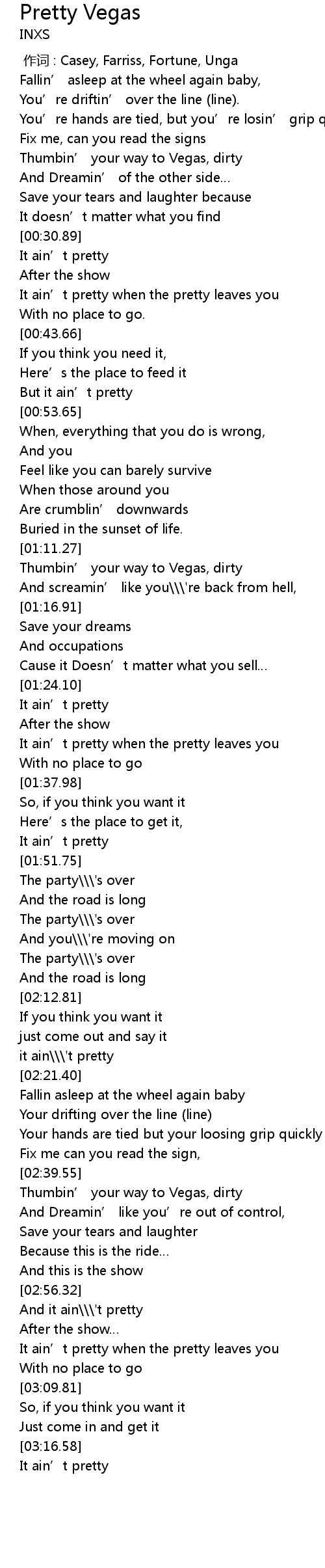 | [00:20.42] | Thumbin' your way to Vegas, dirty |