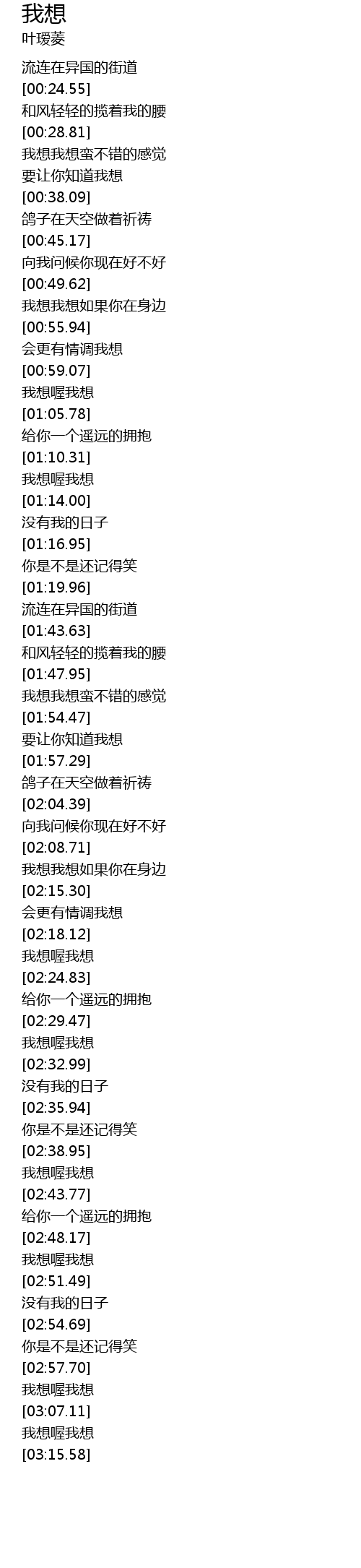 | [01:03.29] | wǒ xiǎng ō wǒ xiǎng |