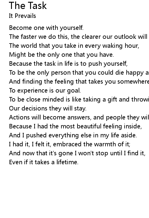 Because the task in life is to push yourself, |