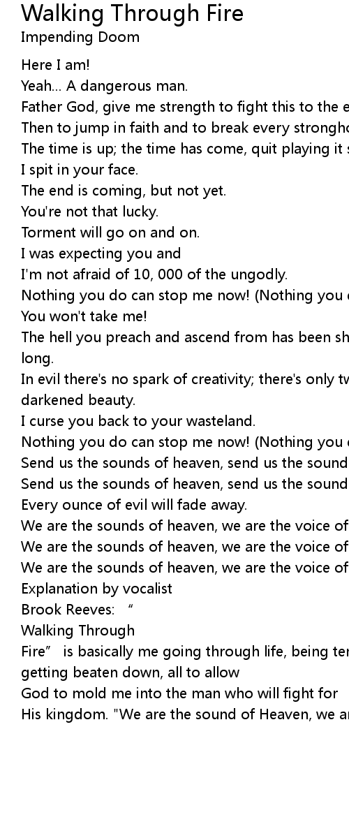| Fire” is basically me going through life, being tempted, going through trials, getting beaten down, all to allow | |
