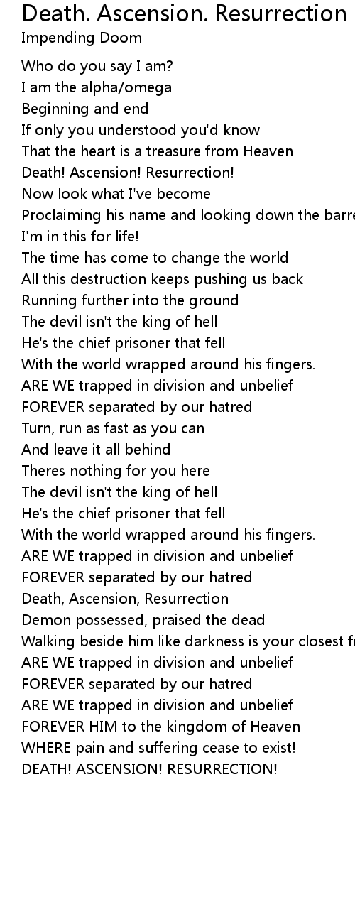 Death! Ascension! Resurrection! |
