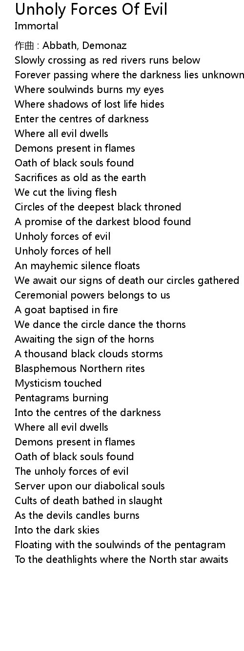 | Song | Unholy Forces Of Evil |