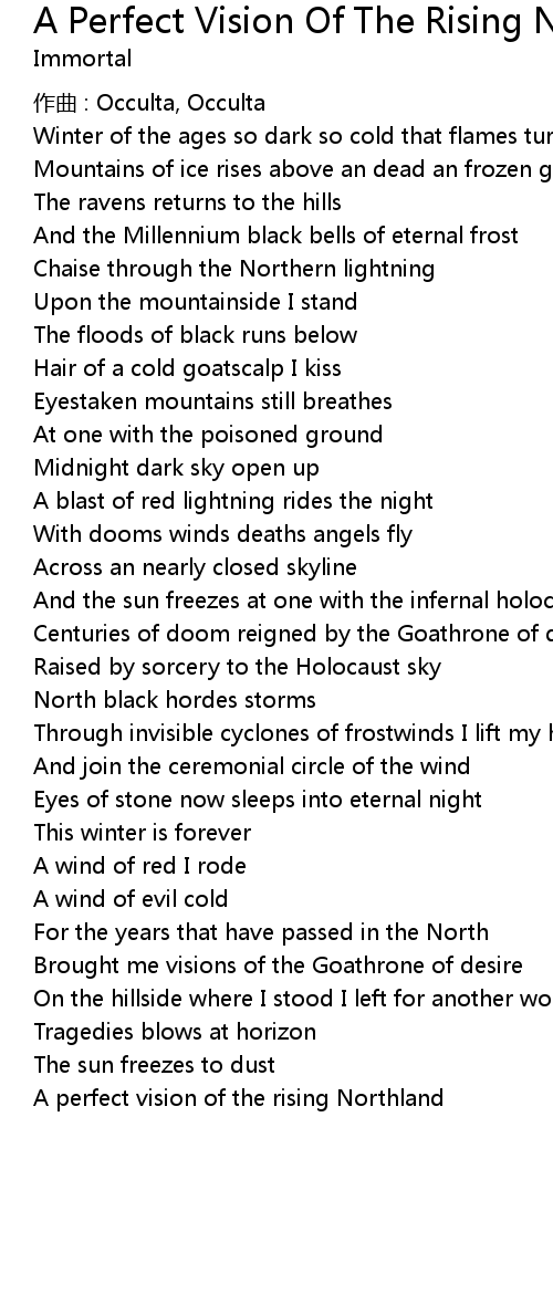 | Song | A Perfect Vision Of The Rising Northland |