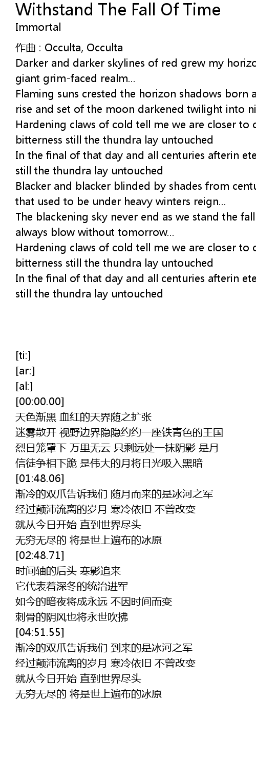 | Song | Withstand The Fall Of Time |