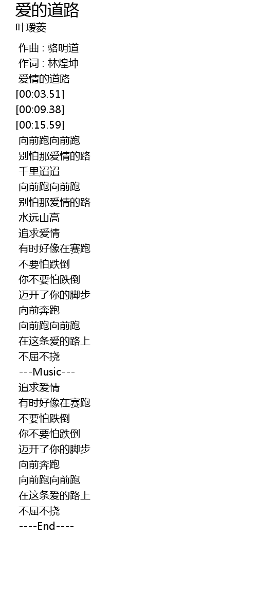 | [00:01.52] | 爱情的道路 |