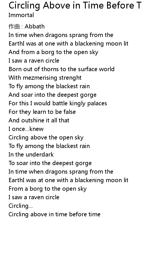 | Song | Circling Above in Time Before Time |