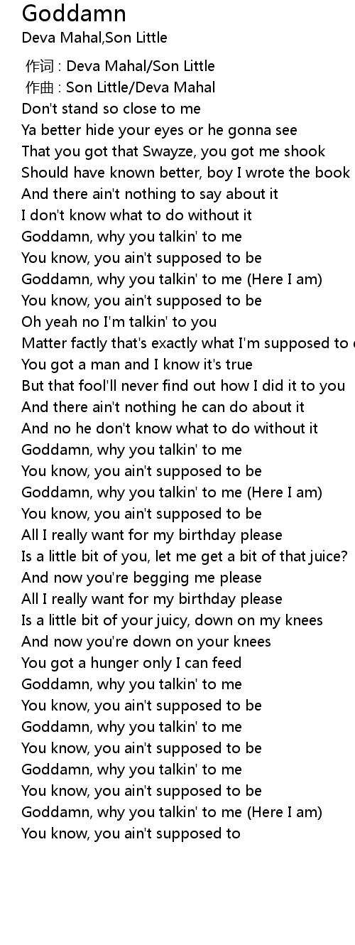 | [00:53.43] | Goddamn, why you talkin' to me (Here I am) |