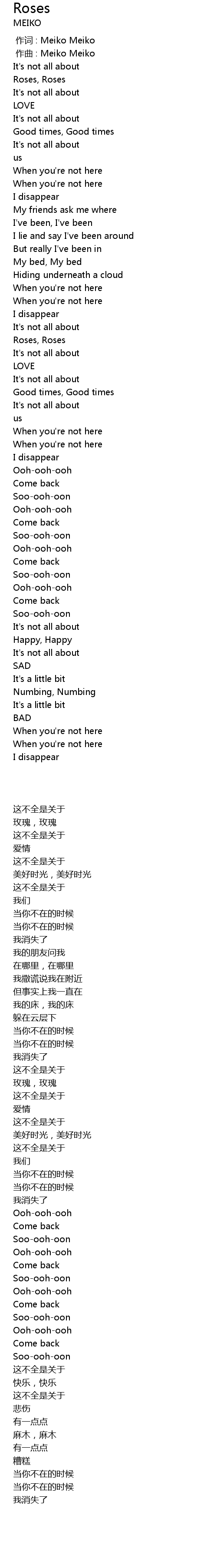 | [00:01.000] | zuò qǔ : Meiko Meiko |