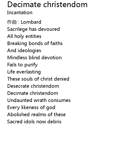 | Song | Decimate christendom |